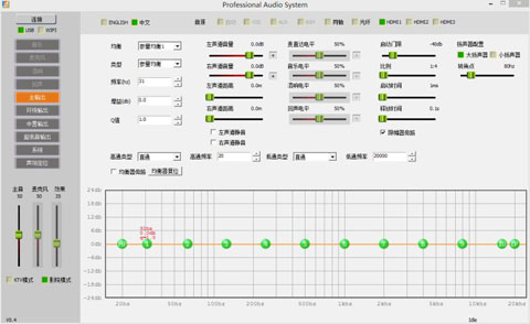 2、KTV模式和影院模式,每个相关通道参数均独立可调。